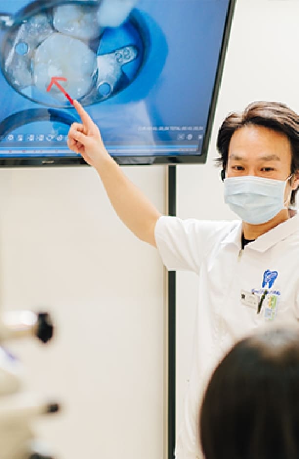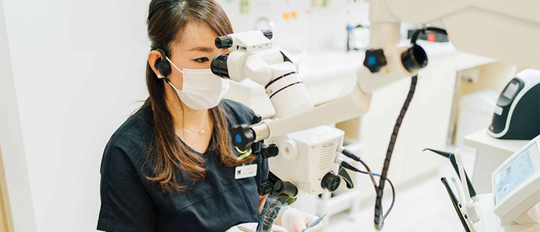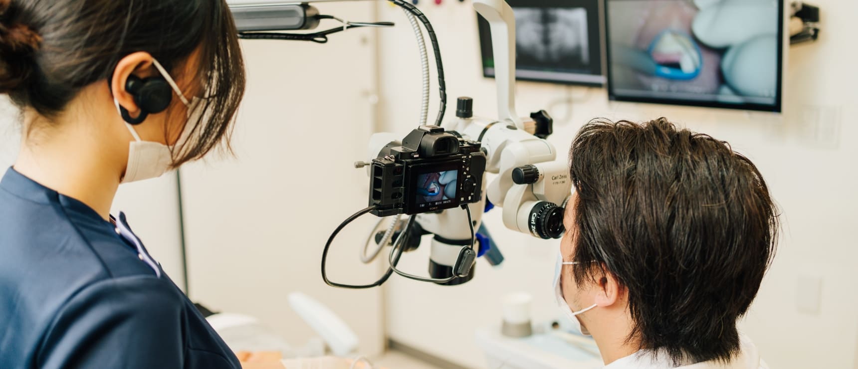当院では最大30倍に拡大できるマイクロスコープを用い、肉眼では見えないむし歯や歯のひびまで捉える精密治療を実践しています。再治療の予防や歯の寿命を延ばすことにもつながります。また、ただマイクロスコープを活用するだけでなく、扱う歯科医師も日々研鑽を積んでいます。