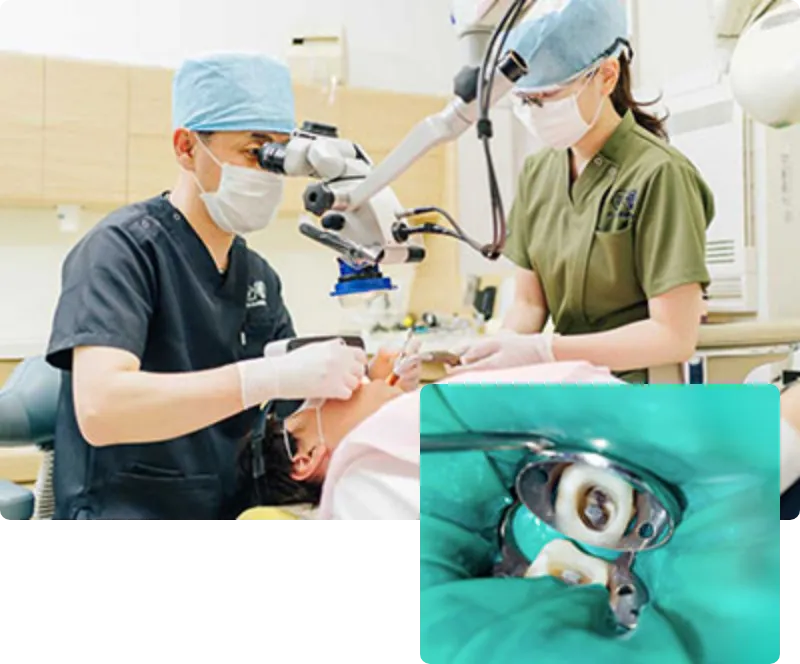 当院では「歯を残せる可能性があるかどうか」を丁寧に見極めたうえで、精密な根管治療に取り組んでいます。感染部分を的確に除去し、再発のリスクを抑えることが、歯の寿命を延ばすことにつながります。