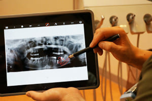 大型モニターやiPadなどを使用し、患部の状態や治療内容などをわかりやすく説明します。