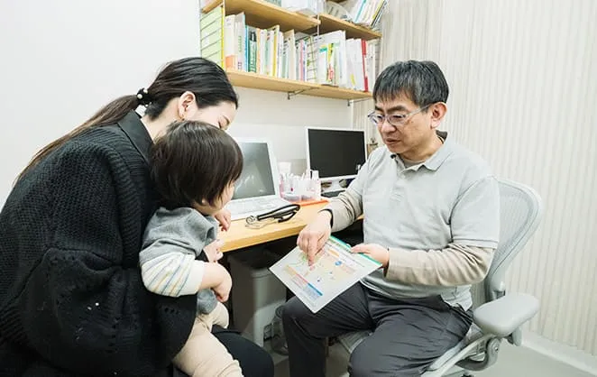 診察では、症状だけでなく、生活の背景や普段の様子もしっかりお聞きします。「しつこいくらい聞く」と感じるかもしれませんが、それはお子さまの状態を正しく把握するためです。どこに原因があるのかを見極めるために、問診はとても大切なプロセスだと考えています。