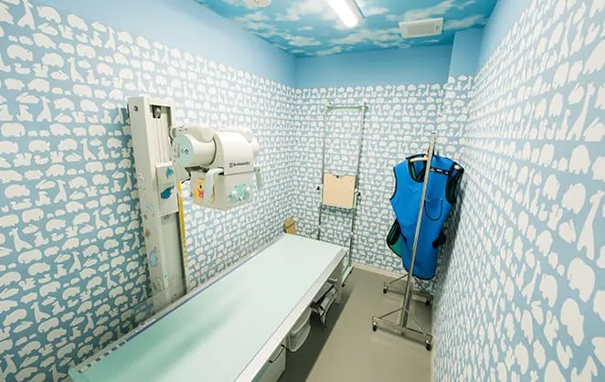 肺炎が疑われる場合、喘息の症状が強い場合、腹痛がひどい場合、異物の誤飲が疑われる場合などに撮影します。必要な場合に限り、撮影を行っています。
