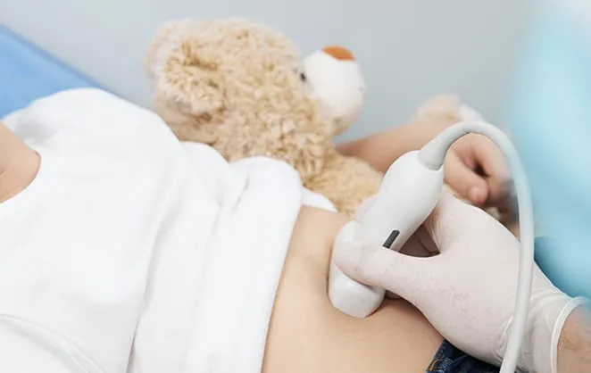 腹痛・嘔吐・血尿などの症状がある際に行う検査です。体への負担が少なく、痛みも伴いませんので、小さなお子さまでも安心して受けていただけます。
